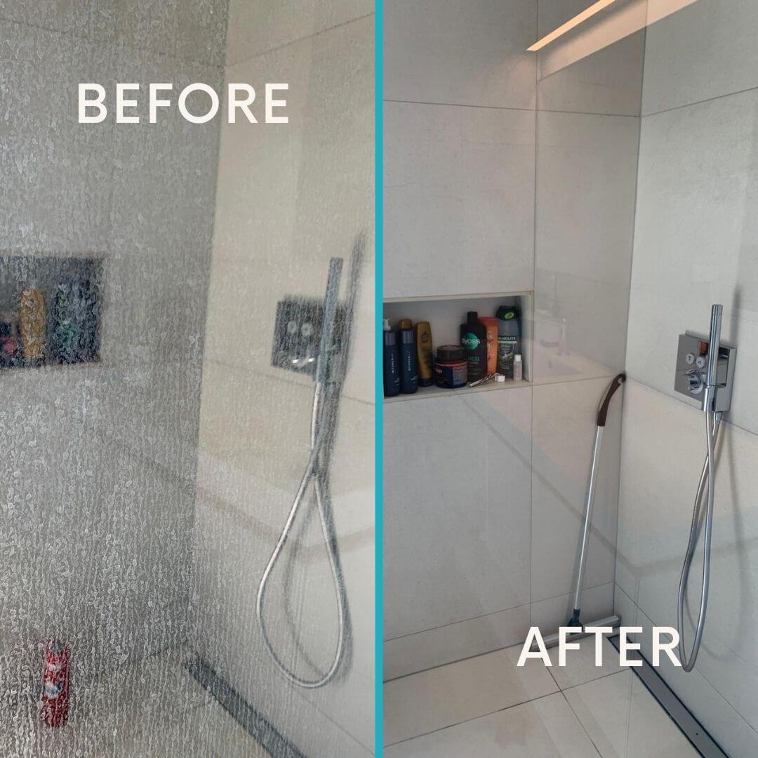 Úsala después de cada ducha y las manchas nunca se acumulan. Sin productos químicos, sin refregar, sin trabajo.